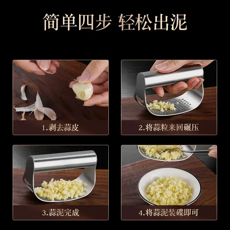 大蒜剥出来放压蒜器里一压,蒜泥就被挤出来了,再拿把小刀一切,那坨泥就掉碗里了,又不脏手又不脏菜板。